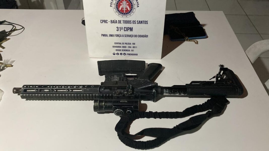 Integrantes da 31ª Companhia Independente da Polícia Militar (CIPM) prenderam dois homens com um fuzil calibre 5.56 e drogas na noite de sábado (15) no bairro de Valéria, em Salvador.. As guarnições realizavam patrulhamento na localidade quando foram informadas que dois indivíduos suspeitos de envolvimento com o tráfico de drogas estariam com arma e drogas em um Renault Duster branco.