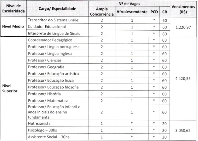 Através do contrato (que se encontra completo em anexo ao final da matéria) é possível saber que serão 140 vagas de contrato imediato e mais 3.020 em cadastro reserva, distribuídas entre os ensino médio, técnico e superior. A depender do cargo desejado, a avaliação ocorrerá através de provas objetivas, discursivas e de títulos.