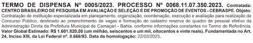 O nome da banca foi divulgado através de Diário Oficial do Estado da Bahia.