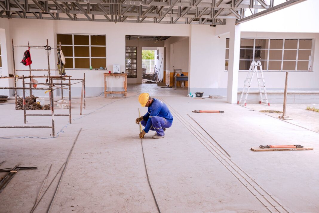 Com uma série de serviços em execução, são realizados nos equipamentos os procedimentos de: fundação, impermeabilização da fundação, execução de pilares e vigas, instalação do sistema de drenagem, reboco, pintura inicial do ambiente interno e externo, instalações (elétricas, cabeamentos e louças), estrutura da cobertura e passeio com acessibilidade.