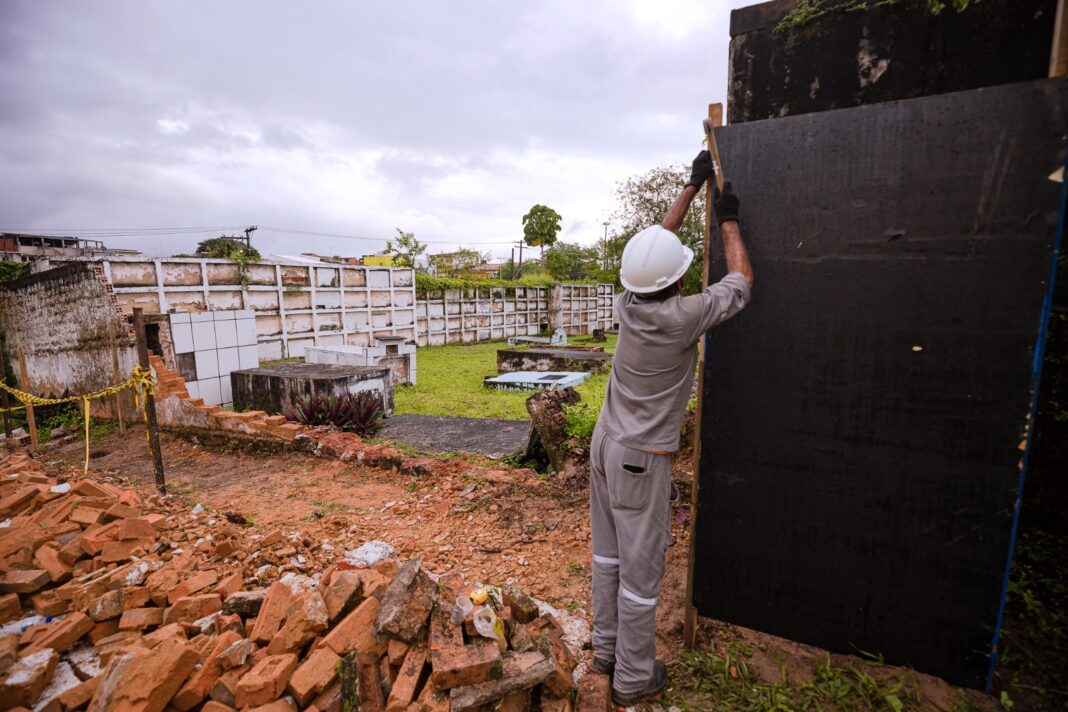 Nesta segunda-feira (6/6), a Secretaria da Infraestrutura (Seinfra) retornou ao local onde parte do muro do Cemitério da Gleba C caiu, para executar a instalação de tapumes, ação que antecede o serviço de recomposição da parede. A queda de parte do muro se deu no trecho próximo a Rua Abaré e ocorreu no último sábado (3/5), ocasião em que pasta realizou o isolamento de toda a área com fita zebrada e, posteriormente, a Coordenadoria Municipal de Proteção e Defesa Civil (Compdec) executar uma vistoria para avaliar se a situação apresentava algum risco para os transeuntes.