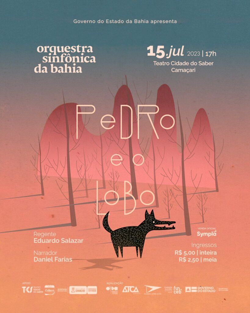 A Orquestra Sinfônica da Bahia (OSBA) irá levar para o palco do Teatro Cidade do Saber (TCS) a obra “Pedro e o Lobo”, do compositor russo Serguei Prokofiev (1891-1953). O evento, que será apresentado no dia 15 de julho, às 17h, conta com patrocínio da Prefeitura de Camaçari, por meio da Secretaria da Cultura (Secult).