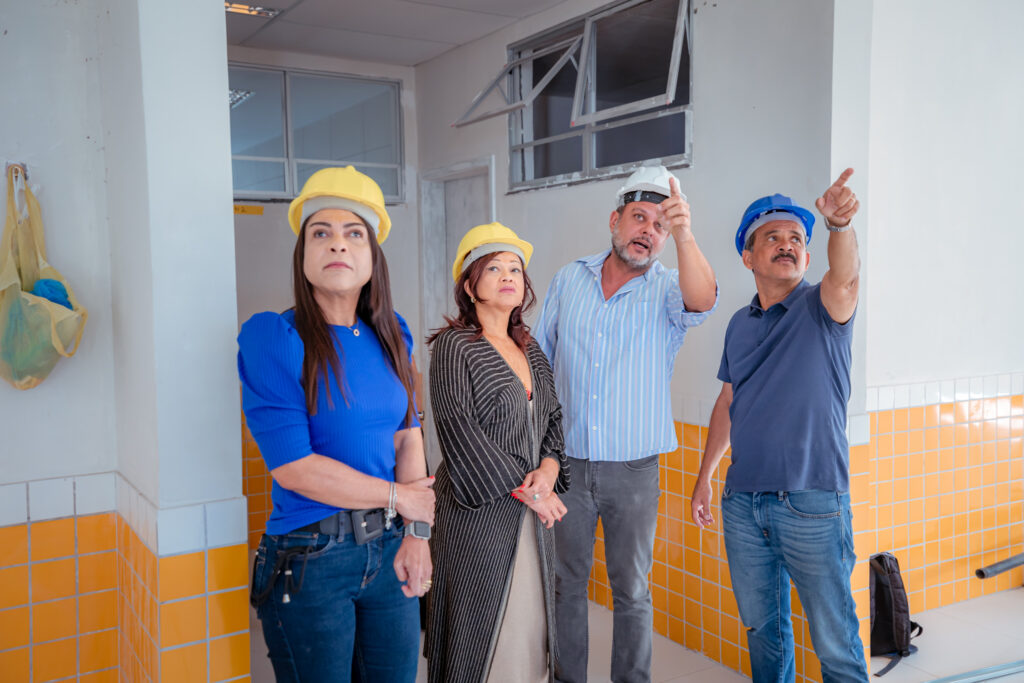 Acompanhado das secretárias da Educação, Neurilene Martins, e da Infraestrutura, Joselene Cardim, o prefeito Elinaldo Araújo visitou as obras de construção da Creche Professora Eunice Pereira dos Santos na manhã desta terça-feira (15/8).