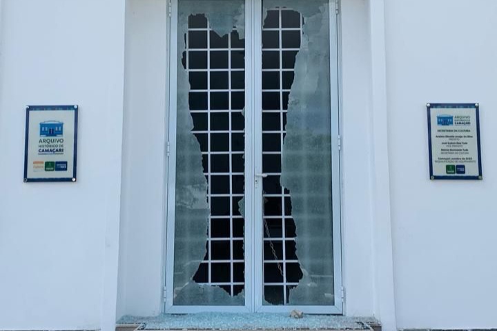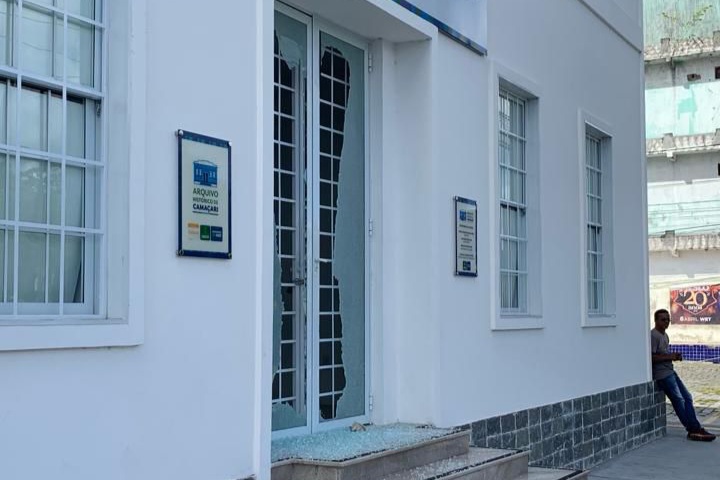 O Arquivo Histórico de Camaçari foi alvo de vandalismo. A porta frontal do prédio, localizado na Avenida Eixo Urbano Central, foi danificada após ser atingida por uma pedra. A imagem do suspeito da autoria da ação foi captada por meio das câmeras de videomonitoramento instaladas no local.
