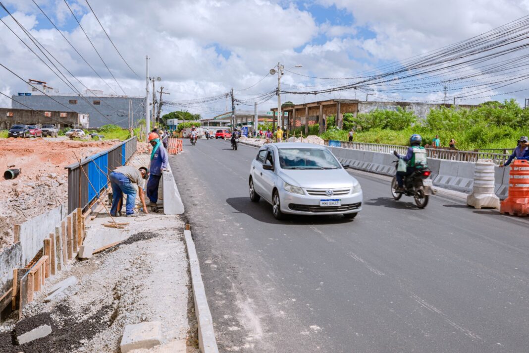 Agora, a ponte oferece duas vias acessíveis, e segue com o andamento da edificação das calçadas para pedestres e instalações de segurança, como guarda-corpo, soldagem das defensas metálicas e a posterior aplicação da sinalização viária. Durante a execução dos serviços, a mobilidade da população segue sendo realizada por meio de uma passarela provisória ao lado do equipamento.