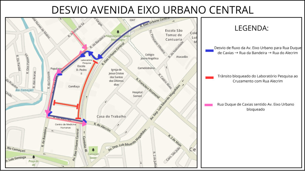 De acordo com a autarquia, as mudanças serão implementadas a partir desta segunda (6/5), e a modificação mais significativa ocorrerá na Rua Duque de Caxias, entre a Rua da Bandeira e a Avenida Eixo Urbano Central. Nesse trecho, o sentido de circulação será modificado para melhor adequação ao fluxo de veículos durante o período de obras.