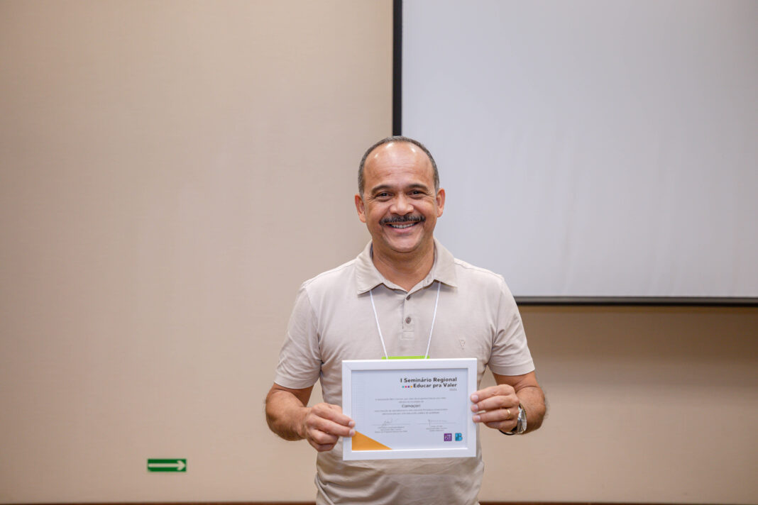 Na oportunidade, o chefe do Executivo municipal recebeu homenagem em agradecimento à parceria firmada com o Programa Educar pra Valer (EpV), e por demonstrar o compromisso em manter uma educação pública de qualidade. Ele reconheceu a importância da proximidade dos prefeitos com a educação e falou sobre o programa. “Nos fortaleceu e motivou bastante. Eu acho que a parceria e a troca de ideias fez com que nós avançássemos, pois melhoramos na oferta da merenda escolar e passamos a oferecer o desjejum, implantamos tecnologia nas escolas, e mais a matéria de língua inglesa. A parceria com o programa nos deu um novo norte, e acho que, com isso, ganhou todo mundo, em especial a nossa cidade, os nossos alunos e professores”.