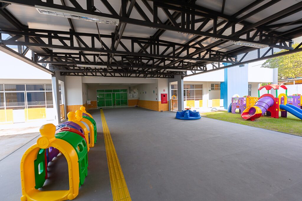 Pensada para ser um ambiente seguro e acolhedor, a nova Creche Municipal Professora Eunice Pereira dos Santos ocupa uma área de aproximadamente 2.200 metros quadrados (m²) e tem capacidade para atender até 188 crianças em período integral, com idades entre 6 meses e 5 anos e 11 meses.